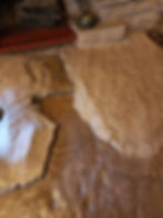 Near the fireplace are a few stones, raised above the level of the others. These stones lack the heavy, shiny "Johnson's Wax" of the others and therefore look like Bear Run stones piercing the creek's surface to remain dry. Our guide stated that legend attributes this 'idea' to E. J. Kaufmann...but he wasn't buying. He thought of this as an idea Wright just "allowed" the client to believe was his, as it's one that "screamed of being a classic Wright concept".