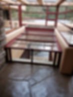 When first entering the great room of the house, one is taken by the highly waxed, natural stone floors, which mirror the look of the wet stones in the Bear Run creek running below the house. Raised and un-waxed stones near the fireplace have the look of protruding stones one would hop between, to remain above the stream's waterline. Wright regularly designed his spaces' furniture as well. I have heard it said that he did so to, "client-proof" the beauty of his home designs. I asked our guide about this and he dismissed the quote as an example of Wright's "humor", which regularly had him "defending himself" later.